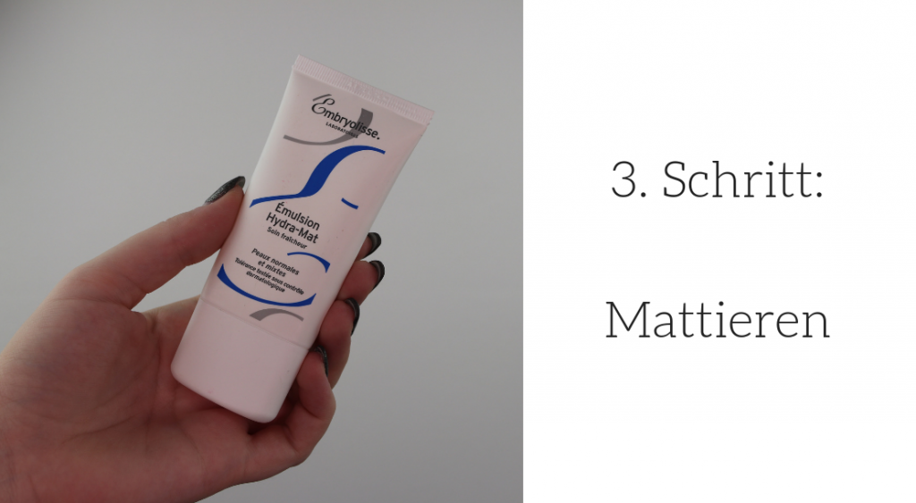 - Der nächste Schritt ist eine mattierende Pflege. Auch diese wirkt sanft hydrierend, also probiert aus ob ihr Schritt 2 und 3 braucht, oder ob auch nur einer reicht. Wenn ihr nur einen von beiden macht, würde ich die mattierende Pflege empfehlen. Embryolisse ist seit langem DIE Geheimwaffe von Make-up Artists. Es ist eine hervorragende Feuchtigkeitscreme, die gut hydriert und gleichzeitig eine ausgezeichnete Basis für eine Foundation bietet. Von der bekannten Lait-Crème Concentré, gibt es auch einen mattierende Version, die Emulsion Hydra-Mat. Kaufen könnt ihr sie auf Amazon. Auch von Artemis gibt es eine gut Lösung.