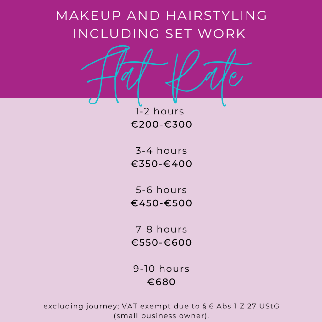 Flat Rate for makeup and hairstyling including set work: