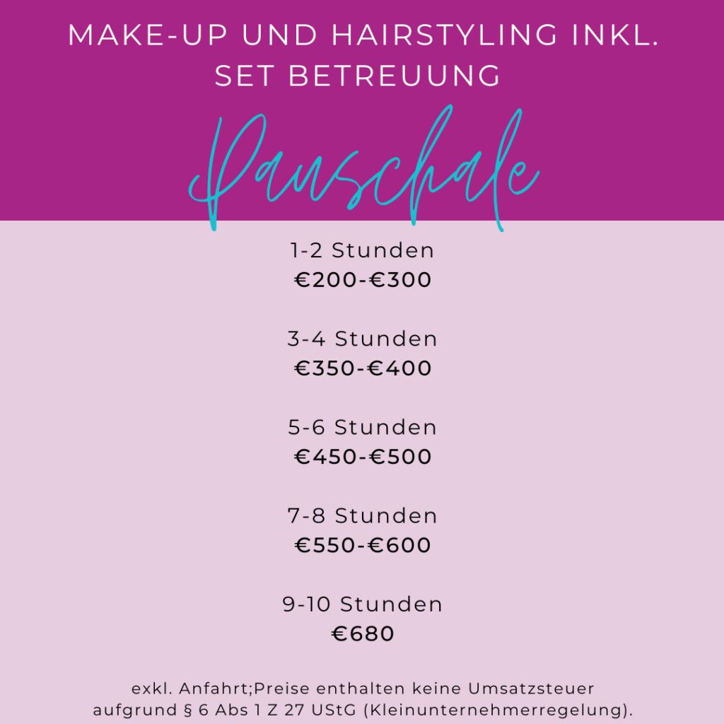 Make-up und Hairstyling inklusive Set Betreuung: Pauschale